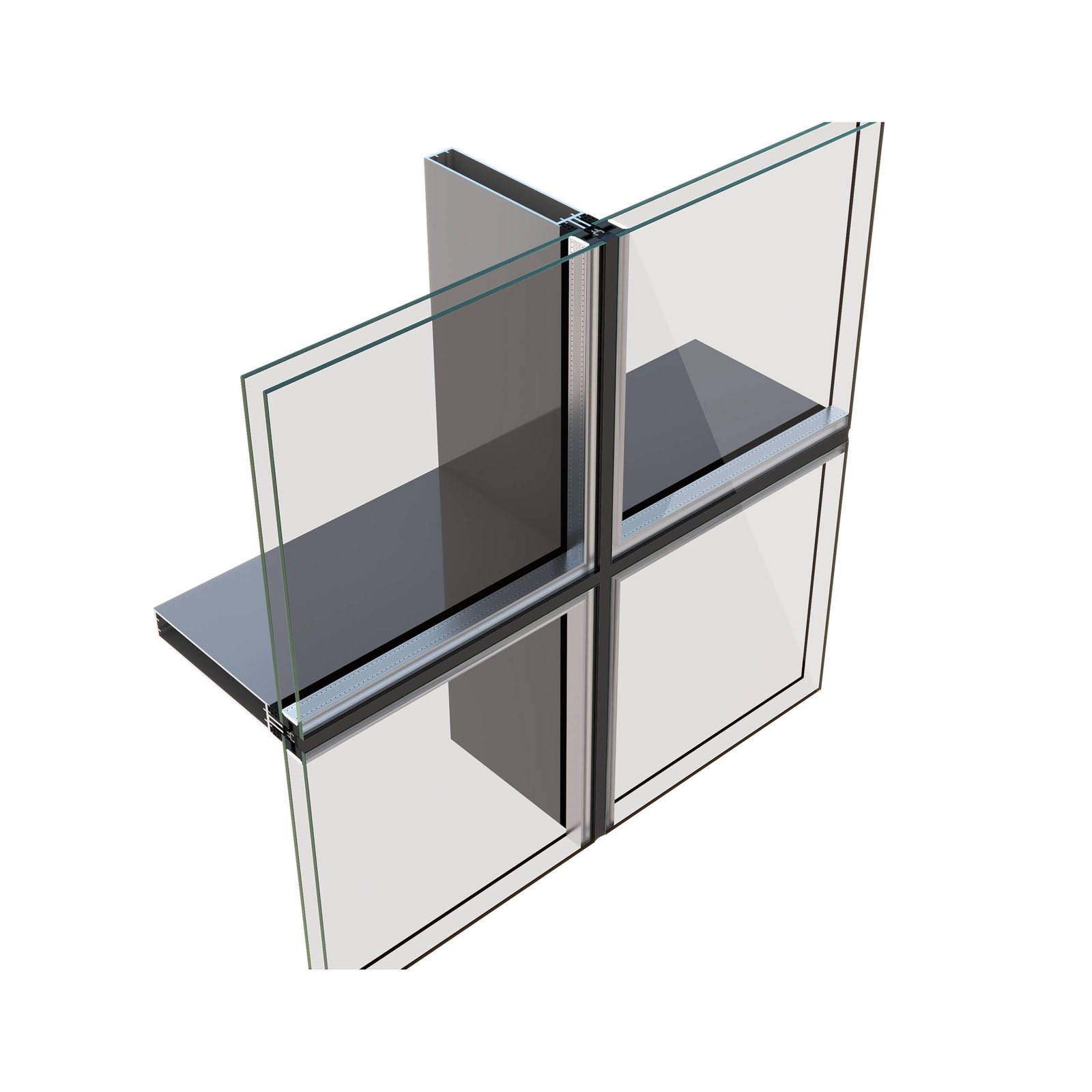A cutting-edge minimal curtain wall system featuring slim aluminum mullions and transoms. It is engineered to incorporate various glass panels and withstand fluctuating wind loads.