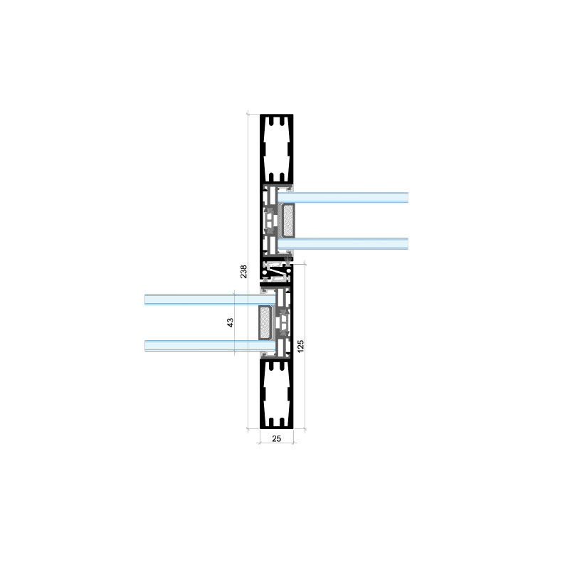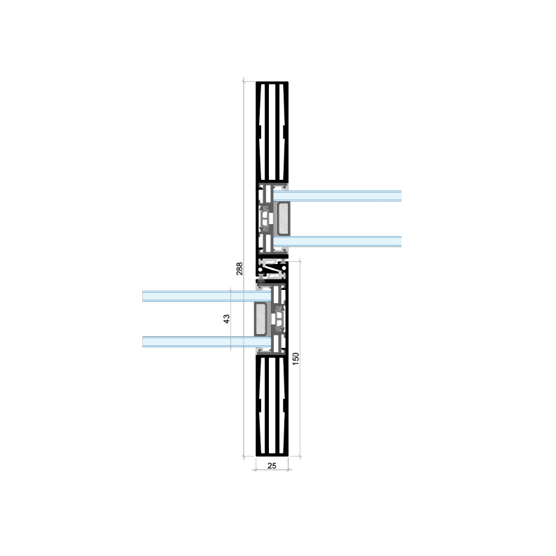 Designed for seamless integration with all Skyclos minimal systems, its mullion depths are adapted to match the frame depth of minimal sliding systems, serving as a functional extension for demanding facades.